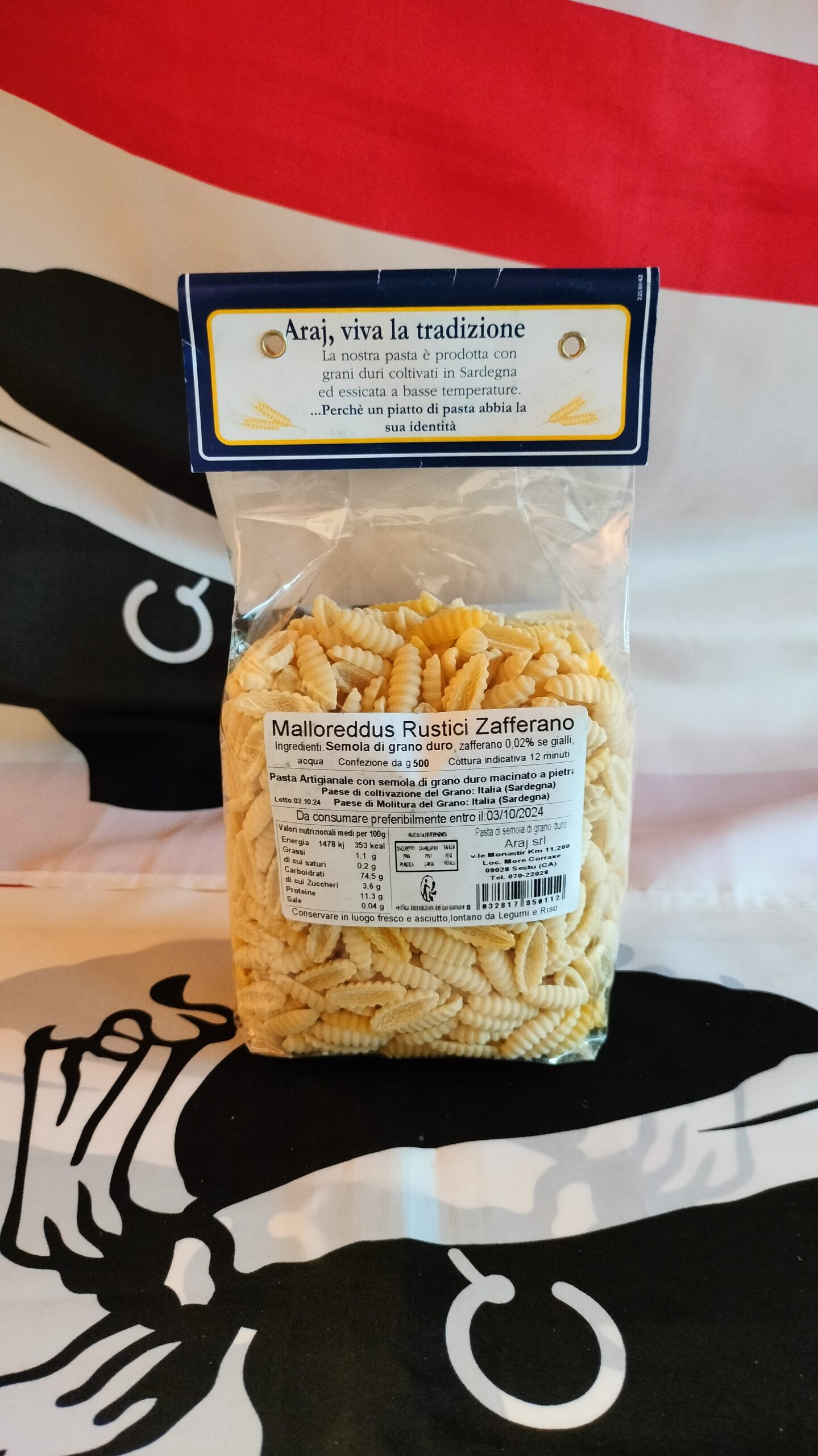I Malloreddus Tricolore sono una pasta di semola di grano duro sardo macinato a pietra. Questa tipologia di pasta si abbina con diversi tipi di sughi. La confezione contiene oltre ai malloreddus normali anche quelli preparati con polvere di zafferano.