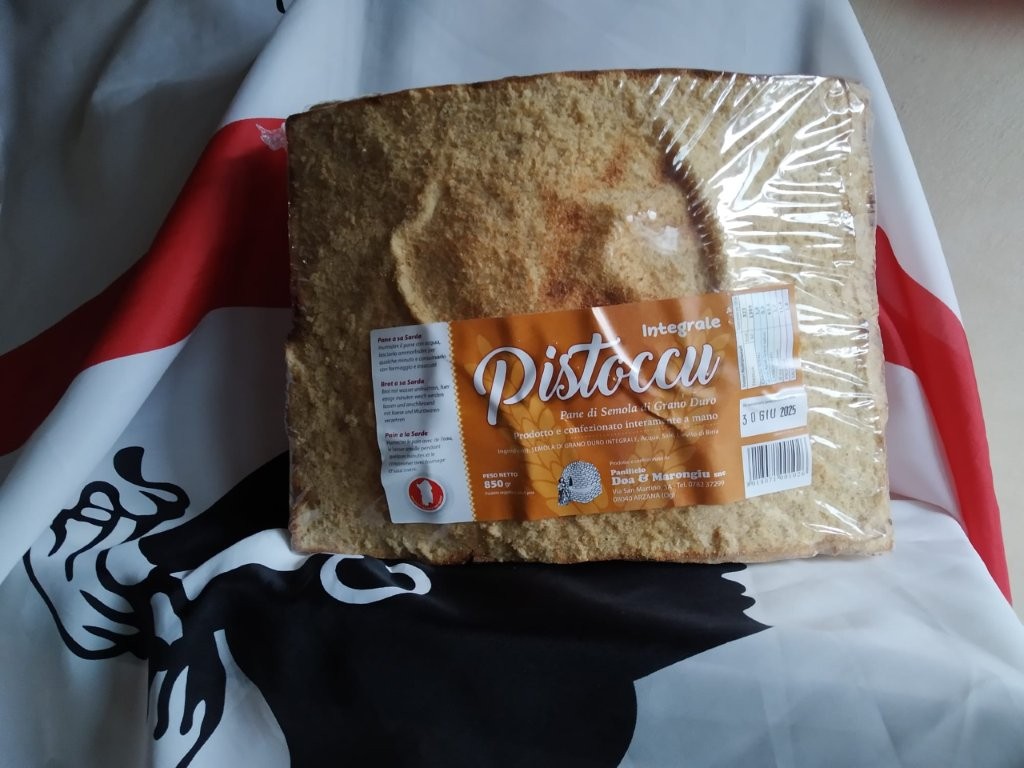Il pane pistoccu integrale è un pane tipico dell’ Ogliastra, si può consumare croccante oppure leggermente bagnato nell’ acqua per accompagnare formaggi, salumi e carni.